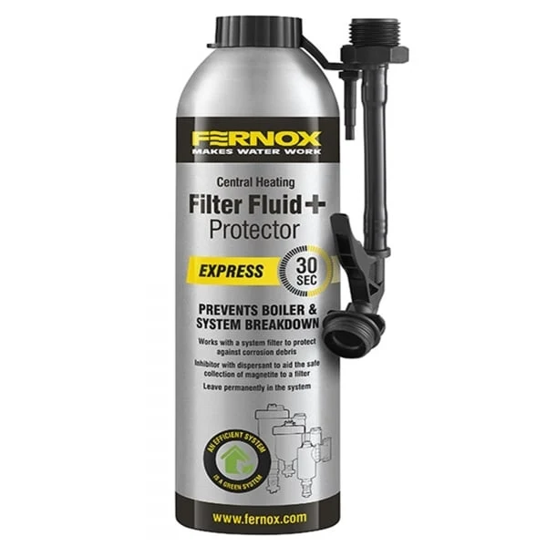 One Fernox Filter Fluid Protector 400ml ;can will protect an average sized system (100 litres or up to ten single radiators) and is added via a radiator, TF1 Filter or system filling loop. Fernox Filter Fluid+ Protector Express can be dispensed directly into a radiator air vent, system filling loop or via a TF1 Filter using the appropriate adapter supplied with the product. The whole process takes less than two minutes and 30 seconds to dose.